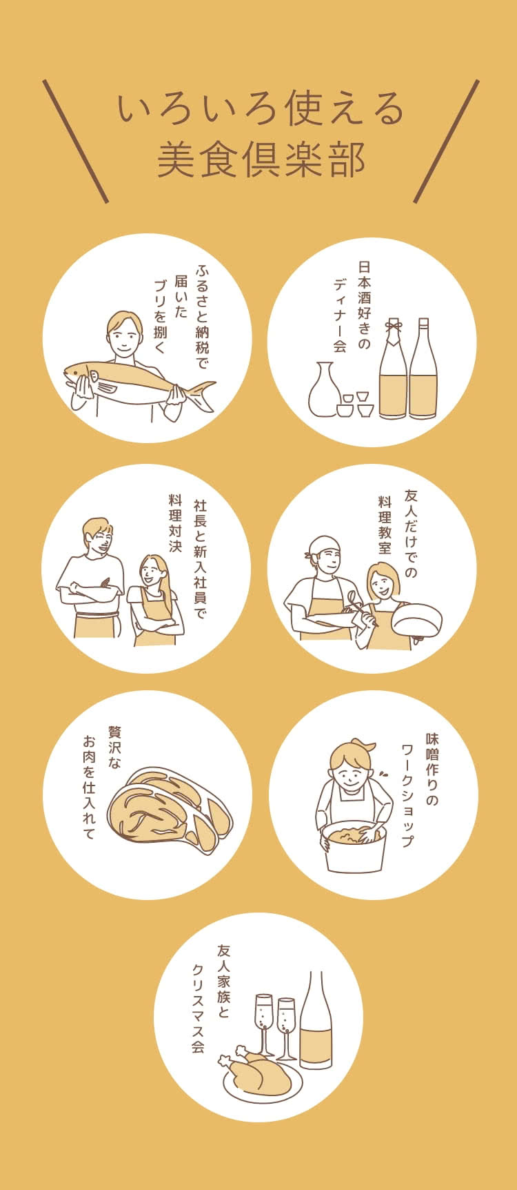 美食倶楽部の価値は、便利で楽しい「スペース」としてだけではありません。農家さんや器を作る職人さん、料亭の料理人さんなどの「食文化の担い手」の方々とコラボレーション。直接触れ合える会員限定イベントを定期開催するとともに、工芸品を実際に使って価値を体感できる「使えるギャラリー」企画なども行っていきます。